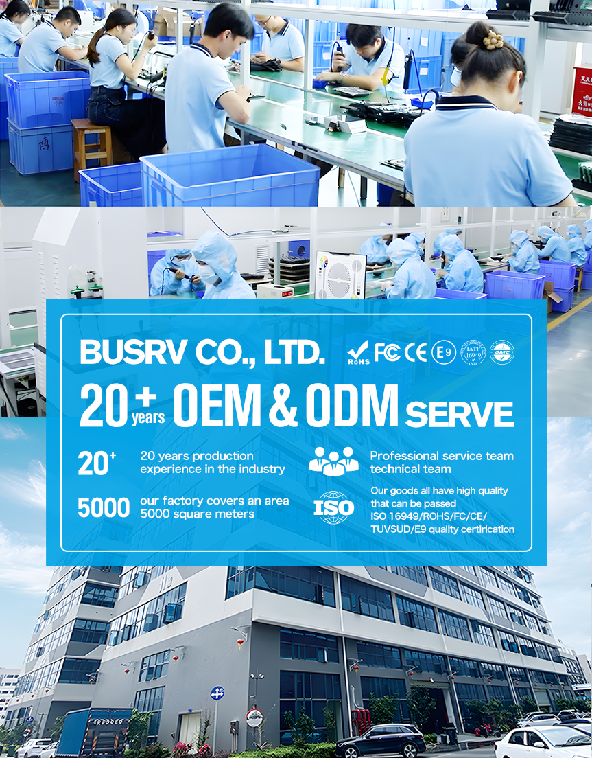 BUSRV Co, Ltd. was established in 2006 and is a high-tech enterprise specializing inthe independent research, development, production, and sales of in-vehicle monitoring camera products. With over 20 years of development, the company possesses over 5,000square meters of self-owned factory space and employs more than 100 staff members.